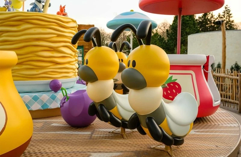 In dieser bunten Attraktion sitzt ihr nicht auf gewöhnlichen Sitzen, sondern in riesigen Marmeladengläsern oder auf süßen Bienchen, die fröhlich um einen Turm aus köstlichen Pfannkuchen summen. Während ihr euch dreht, erfahrt ihr, wie Tante Perenboom ein großes Picknick für ihre Freund*innen vorbereitet hat.